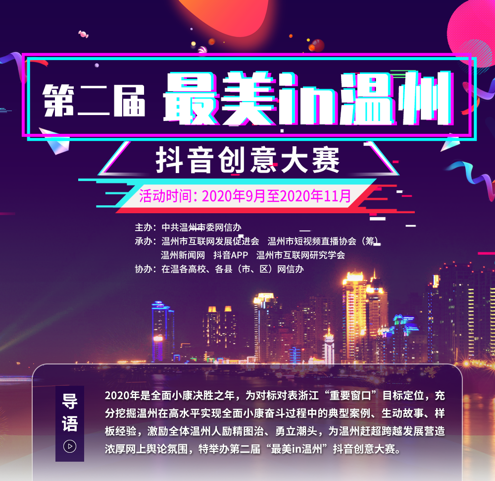 邀您“抖”出全面小康路上的温州范儿 第二届“最美in温州”抖音创意大赛火热征集中